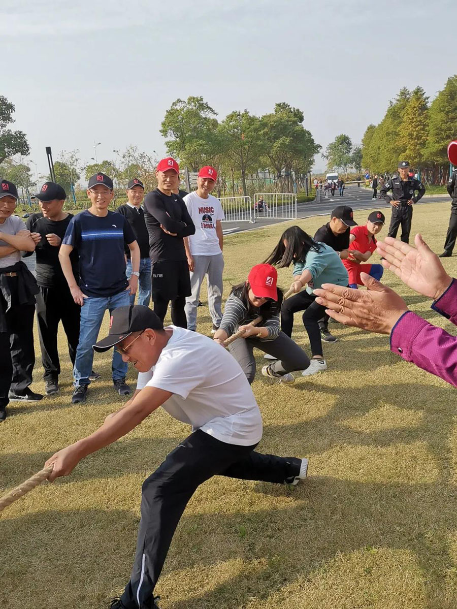 临港新城深秋的天空暖阳高照、碧云万里,大家齐聚滴水湖畔的春花秋色公园,活动在轻松愉悦的氛围中展开。经过短暂的热身,比赛随即开始。首先进行的是趣味拔河和接力跳绳,各小组分两队捉对比拼,由对手挑选己方的参赛队员上场比赛,每组10名队员,5人参加拔河比赛,另外5人参加跳绳比赛。由于前期已对规则和对手有深入了解,各队都挑选了“知根知底”的对手上场比赛,场上少了平日的严肃而多了此起彼伏的欢声笑语。虽然上场比赛的队员大多不是实力之选,但大家通过努力感受到比赛的欢乐、比赛的激情。